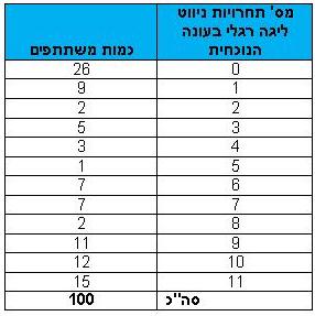 ג. גם הגדרת כמות התחרויות המחושבות לליגה כ-5 יכול לגרום לעליה מסוימת בכמות המשתתפים.